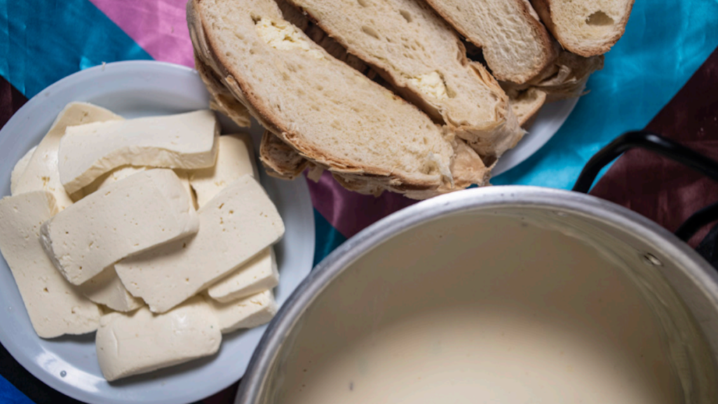 Karen, autora feminista y activista trans del colectivo Putamente Poderosas, comparte un plato que calma el hambre y el olvido; prepara una jarra de colada, con pan y queso, en la cocina de Casa Diversa, una organización que lucha por los derechos de la población LGBTIQ+.